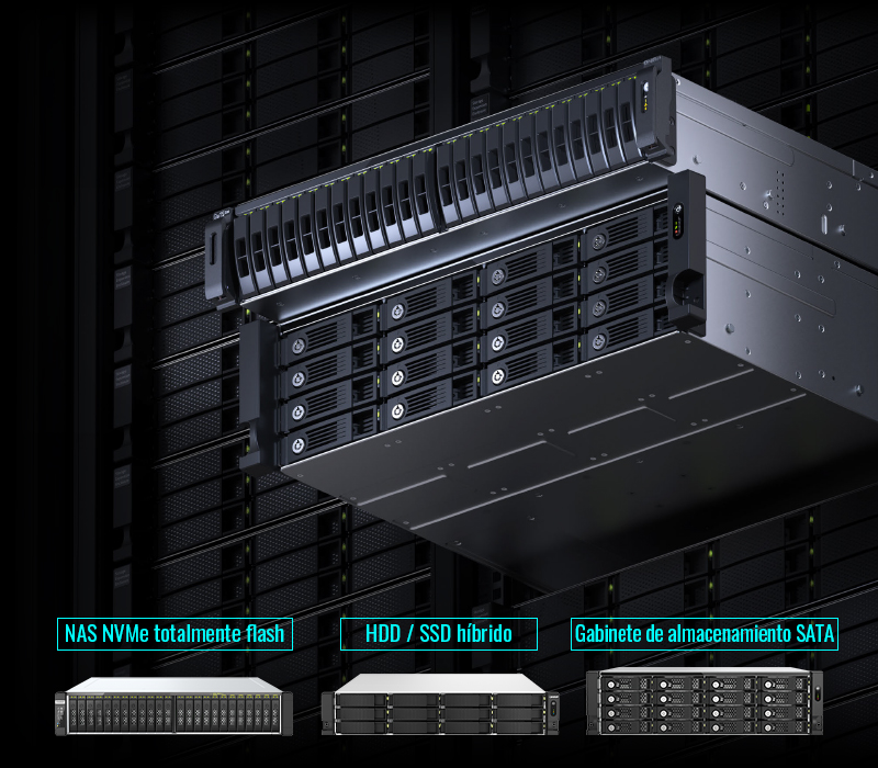 La serie NAS híbrida HDD/SSD TS-hx87XU ofrece cientos de terabytes directamente en la propia unidad NAS. Para aquellos que buscan un rendimiento de vanguardia, nuestro NAS de la serie NVMe cuenta con 25 GbE integrados de alto rendimiento. Ambos brindan la flexibilidad de escalar fácilmente su capacidad de almacenamiento según sea necesario con unidades de expansión. |