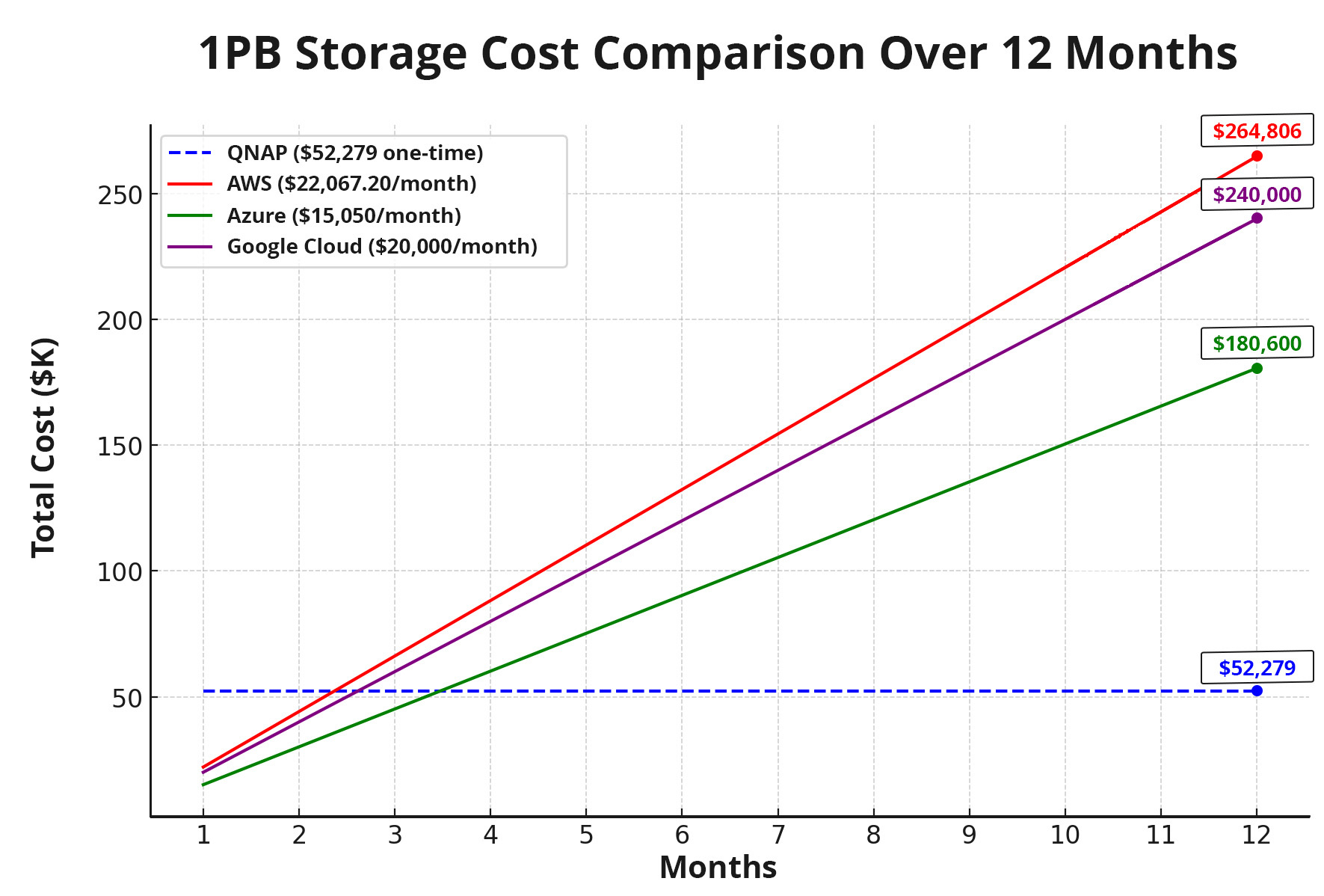 Les frais de stockage dans le cloud peuvent vite devenir coûteux ! Le NAS QNAP offre un investissement uniquel, un stockage évolutif et sans frais cachés, ce qui permet aux entreprises d'économiser des milliers d’euros à long terme. |