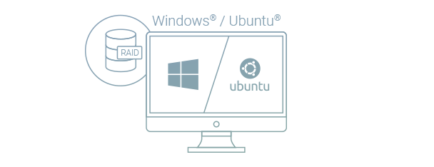 Det går att ansluta TL-D800S till datorer med Windows® och Ubuntu® med den snabba kabeln SFF-8088 (eller SFF-8644) och hantera RAID-konfigurationen med det inbyggda verktyget.