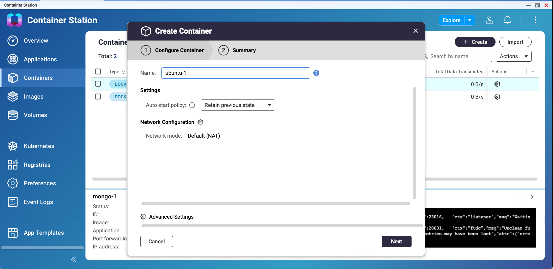 Container Station setup is fast and easy, with automatic configuration detection that enables one-click installation. Using container applications is as easy as clicking the “Create” button.