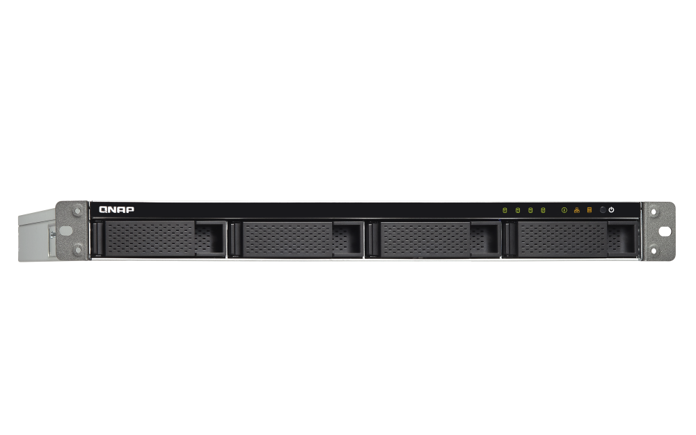 Slot 1: PCIe Gen 2 x2PCIe bandwidth limitations will restrict the NAS 10GbE performance.USB 3.2 Gen 1 port 4 Form Factor 1U Rackmount LED Indicators HDD 1-4, Status, LAN, Storage expansion Buttons Power, Reset Dimensions (HxWxD) 44 × 439 × 499 mm Weight (Net) 8.06 kg Weight (Gross) 11.06 kg Operating Temperature 0 - 40 °C (32°F - 104°F) Storage Temperature -20 - 70°C (-4°F - 158°F) Relative Humidity 5-95% RH non-condensing, wet bulb: 27˚C (80.6˚F) Power Supply Unit 250W (x2) PSU, 100 - 240V Power Consumption: Disk Standby Mode 35.12 W Power Consumption: Operating Mode, Typical 48.75 W Tested with drives fully populated.Fan 2 x 40mm, 12VDC System Warning Buzzer Standard Warranty 3 Max. Number of Concurrent Connections (CIFS) - with Max. Memory 700 Lưu ý: Chỉ sử dụng các module bộ nhớ QNAP để duy trì hiệu suất và độ ổn định của hệ thống. Đối với các thiết bị NAS có nhiều hơn một khe cắm bộ nhớ, sử dụng các module QNAP có thông số kỹ thuật giống hệt nhau và tham khảo hướng dẫn sử dụng phần cứng để cài đặt các module bộ nhớ QNAP tương thích.