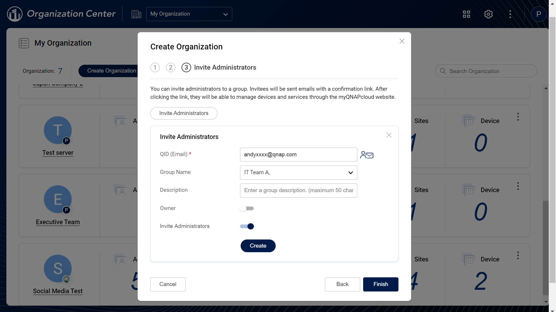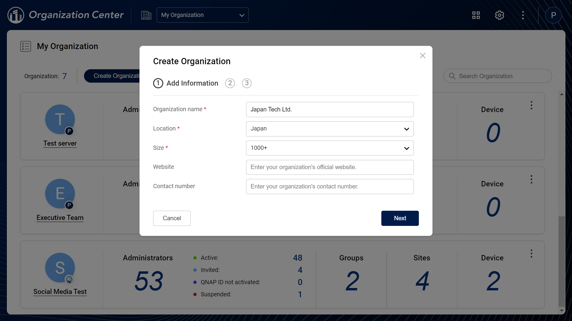 A QNAP Account (QID) is used for binding QNAP NAS for access permissions. On the other hand, an organization usually implements multiple NAS devices for different departments, brand offices, and locations, resulting in complex and time-consuming management for cross-site devices and user permissions. QNAP provides Organization Center as a single platform that allows IT teams to simplify management using an “Organization – Site – Administrator” structure and comprehensively displays all organization information including sites, administrators, and devices. All the structure settings, authority assignments, and groupings are done from the cloud – removing the inefficiency of logging in and out across large-scale devices. It’s just that simple and convenient.