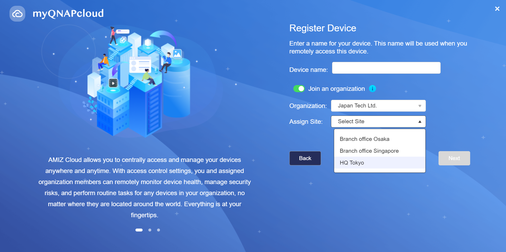 Organization Center can be leveraged by QNAP AMIZcloud central management platform, allowing IT teams to centrally and remotely manage all devices within organizations with greater efficiency and flexibility.