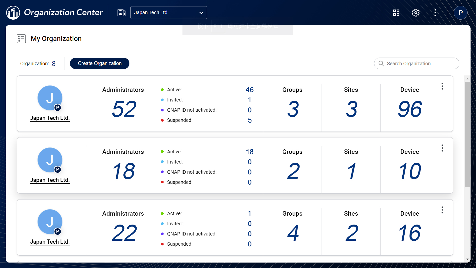 MSPs can attain optimal productivity by using the Organization Center, where they can centrally manage QNAP devices of all clients across multi-sites – making their managed services more agile and reliable.