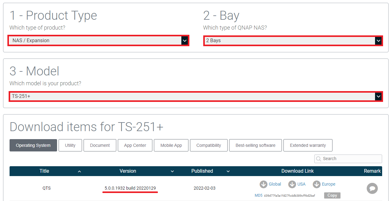 If you receive the above notification from Malware Remover application, you can download the latest firmware version by clicking your NAS model in the above table or from our Download Center. Find your NAS model by selecting product type "NAS / Expansion", then your NAS type and model.