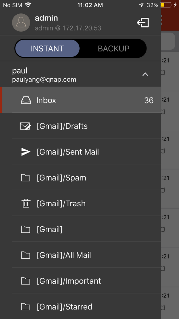 可在「即時」與「備份」模式之間切換。 即時模式: 在此模式下做出的所有變更,都將儲存並套用至電子郵件伺服器中的電子郵件。 備份模式: 即使刪除了電子郵件伺服器中的電子郵件,您仍可在 NAS 中檢視其備份版本。