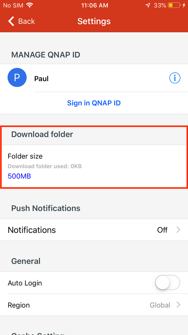 點按〔設定〕可變更各項設定,包括 QID、下載資料夾、推播通知、一般以及快取。