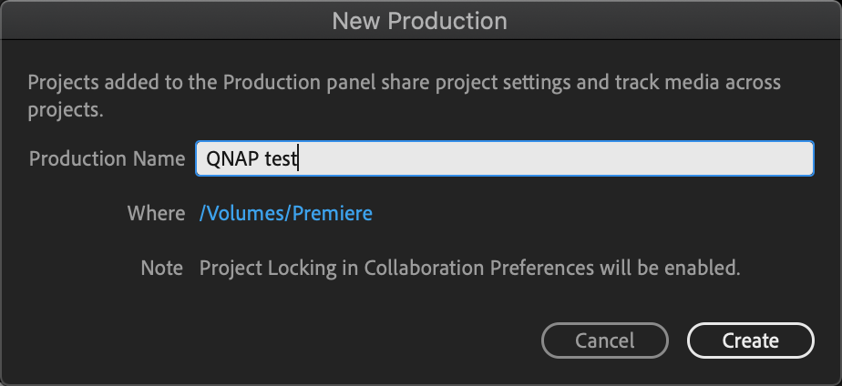 Adobe Premiere Pro Productions 與 QNAP NAS 的協作