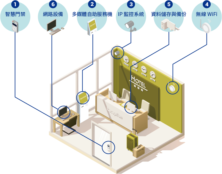 配置一套智慧門禁系統,對於房客與房東而言都是一件很便利的事。房客入住時,只要透過多媒體機 check-in 系統,即可完成入住手續,同時也能讓房客理解住房資訊。您需要提供無線網路及相關網路設備,滿足房客資料查詢或電話聯繫的需求。許多房客的資料及各種檔案文件也應該妥善保存。IP 監控系統可保障房客安全。