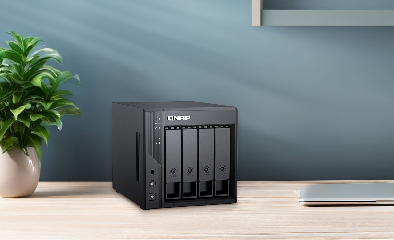 4-bay 2.5GbE NAS Qu405 搭載新一代 Intel® Core™ 3 八核心處理器,支援 AES-NI 硬體加速加密引擎,內建 GPU 加速影片轉檔,提供高效可靠的資料儲存中心。Qu405 採用 DDR5 記憶體,最高可彈性擴充至 16GB;內建 2 個 M.2 PCIe Gen 3 插槽,可配置雙 M.2 NVMe SSD 作為高速儲存池或快取加速,展現優異的運算與資料存取效能,協助您輕鬆分享大型檔案或高效率備份/還原資料,亦可啟用 Qtier™ 自動分層儲存,提升 NAS 儲存空間使用率並帶來流暢的資料存取體驗。