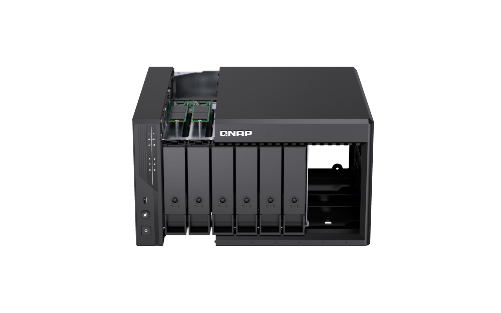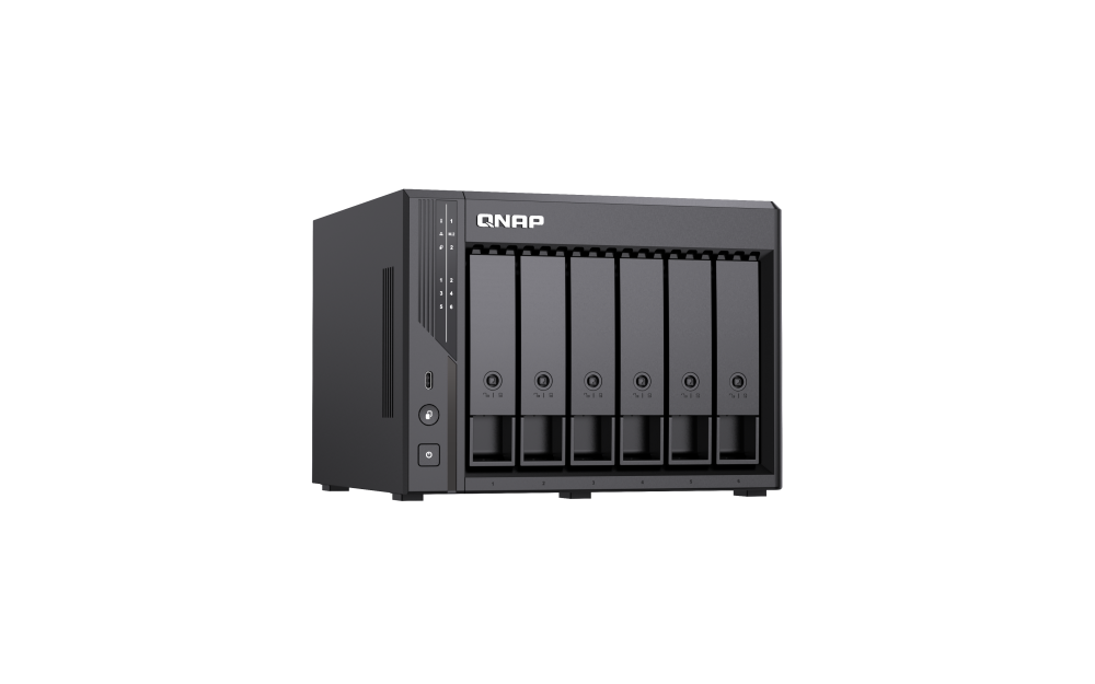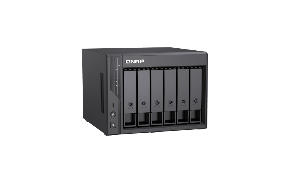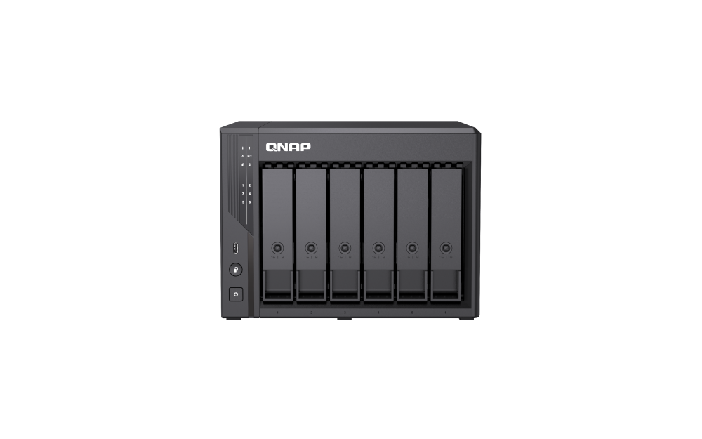 1 x Type-C USB 3.2 Gen 2HDMI™ 輸出 1, HDMI™ 2.1 (up to 4096 x 2160 @ 60Hz) 外型規格 直立式 LED 指示燈 系統狀態、LAN、USB、HDD1~6、M.2 1~2 按鈕 電源、USB 複製、系統重置 尺寸 (高 x 寬 x 深) 165 × 226 × 217 mm 重量 (淨重) 2.52 kg 重量 (總重) 4.82 kg 操作溫度 0 - 40°C (32°F - 104°F) 儲存溫度 -20 - 70 °C (-4°F - 158°F) 相對濕度 5-95% RH (不凝結),濕球:27˚C (80.6˚F) 電源供應設備 120W 變壓器 耗電量:運作模式,一般 84.42 W 已使用 ST8000NM000A 完全安裝進行測試。系統警示 蜂鳴器 Kensington 安全性插槽 同時連線 (CIFS) 數目上限 - 最大記憶體 1500 注意:請僅使用 QNAP 記憶體模組來維持系統的效能與穩定性。若 NAS 裝置有多個記憶體模組,請使用相同規格的 QNAP 模組,並參考硬體使用手冊安裝相容的 QNAP 記憶體模組。