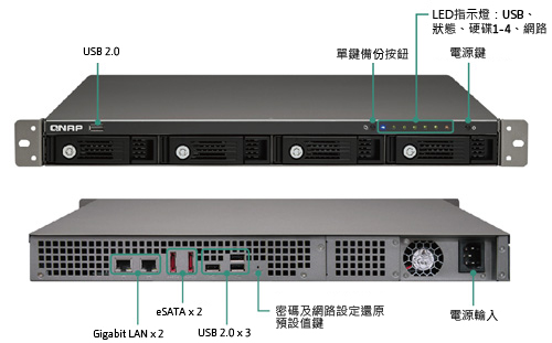 支援硬碟數量類型 4 x 3.5" 或 2.5" SATA I/II 硬碟
