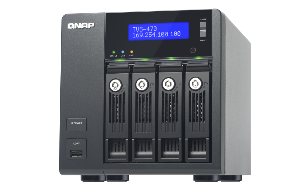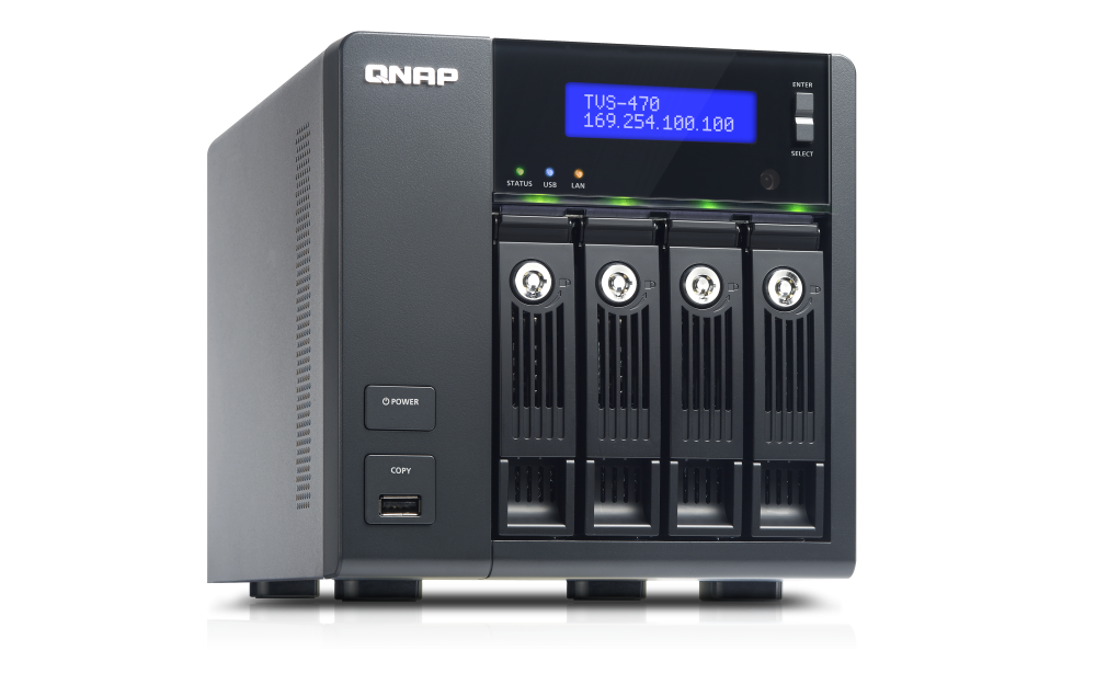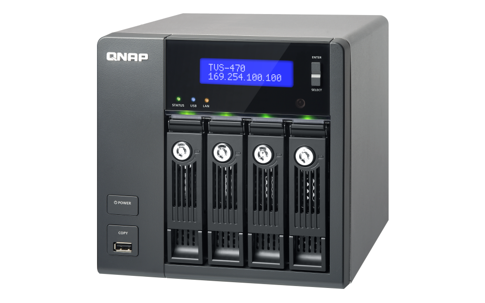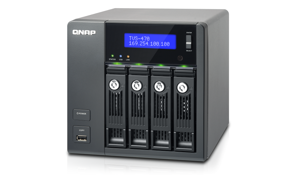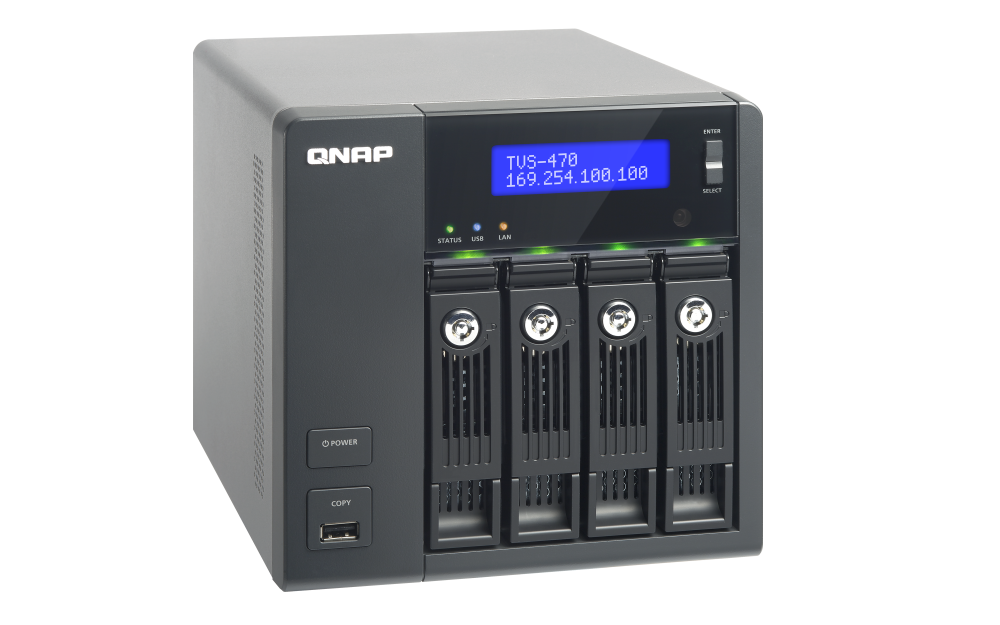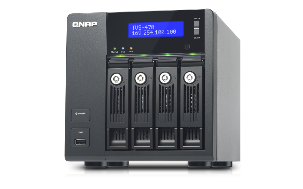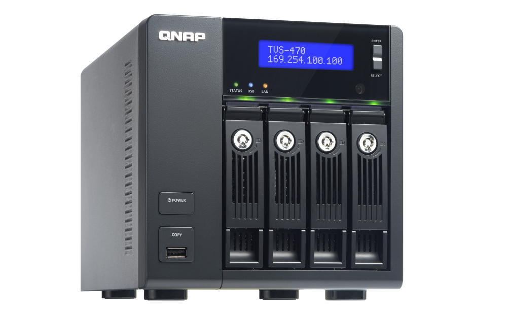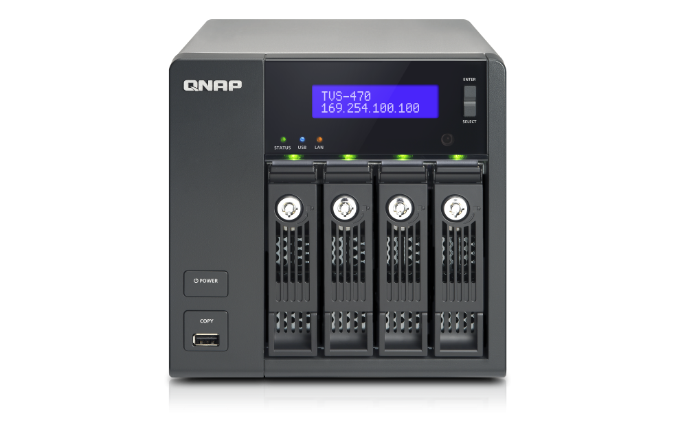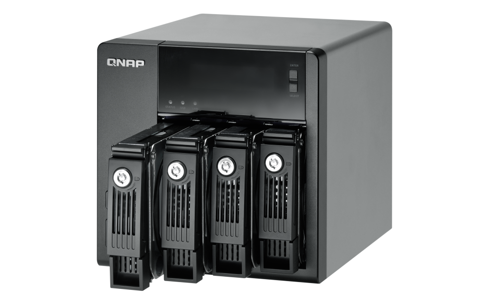 | 支援硬碟數量類型 | 4 x 3.5” 或 2.5” SATA 6Gb/s, SATA 3Gb/s 硬碟或 SSD 備註: 1. 系統出貨不包含硬碟。 2.硬碟相容性列表請參考 www.qnap.com/compatibility |