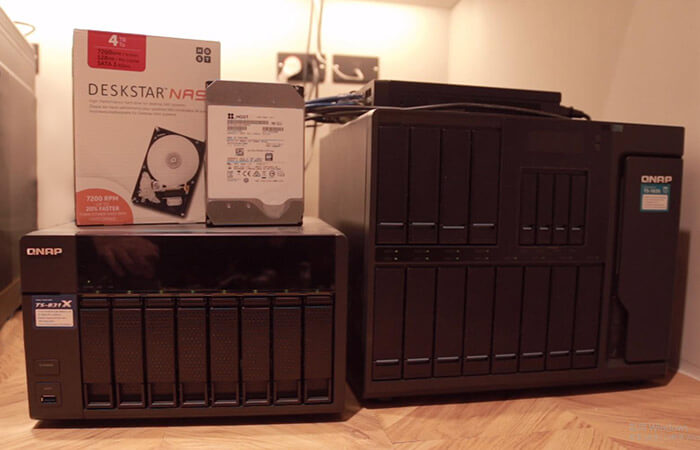 考量到工作上龐大儲存需求和快速資料傳輸的必要性,經過多方比較後,有機像素選擇了擁有 16-bay 大容量的 QNAP TS-1635。TS-1635 搭載 Annapurna Labs Alpine AL-514 四核心 1.7 GHz 處理器,內建 2 個 10GbE SFP+ 網路埠,可有效滿足大量網路資料傳輸需求。支援兩個記憶體插槽,最高可擴充至 16GB,效能強大,在NAS 上也能輕鬆進行素材編修。至於硬碟,有機像素選擇搭配8 顆 HGST Ultrastar 7K6000 系列 4TB 硬碟,該硬碟具備 7,200 RPM 高轉速效能,能提供影音工作者值得信賴的資料讀寫速度和品質。
