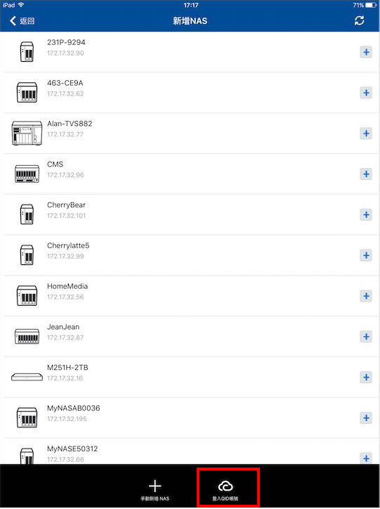 登入成功後,即可將所有在 myQNAPcloud (QID) 註冊的 NAS 匯入裝置清單。