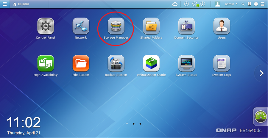 1. 在 NAS 管理介面開啟「儲存空間總管」。