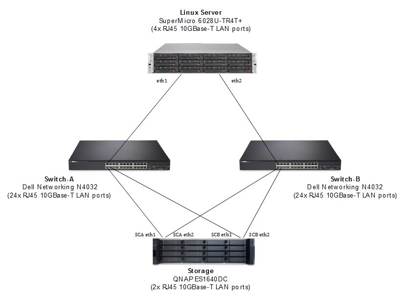完成多路徑設定後,Linux iSCSI initiator 將使用所有路徑進行傳輸,以達成負載平衡與高可用性效果。