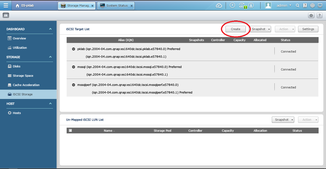1. 前往「儲存空間總管」>「iSCSI 儲存」。