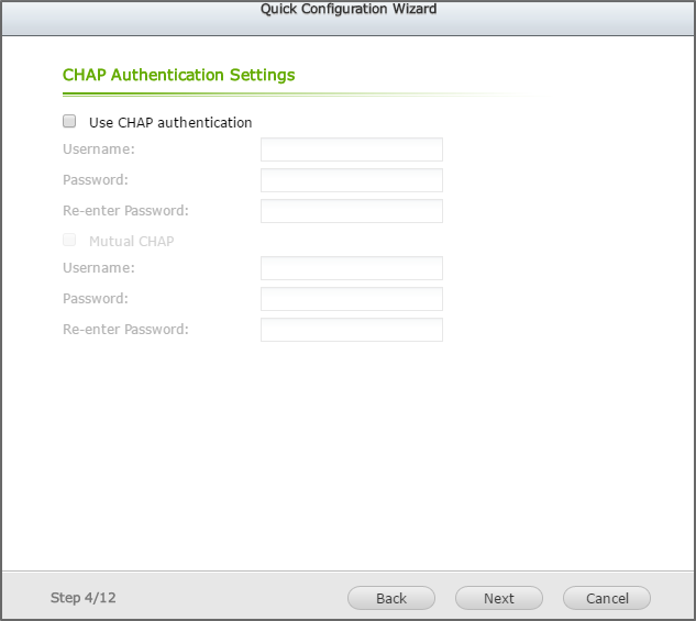 5. 在這份教學中我們不會開啟 CHAP 功能,按「下一步」。