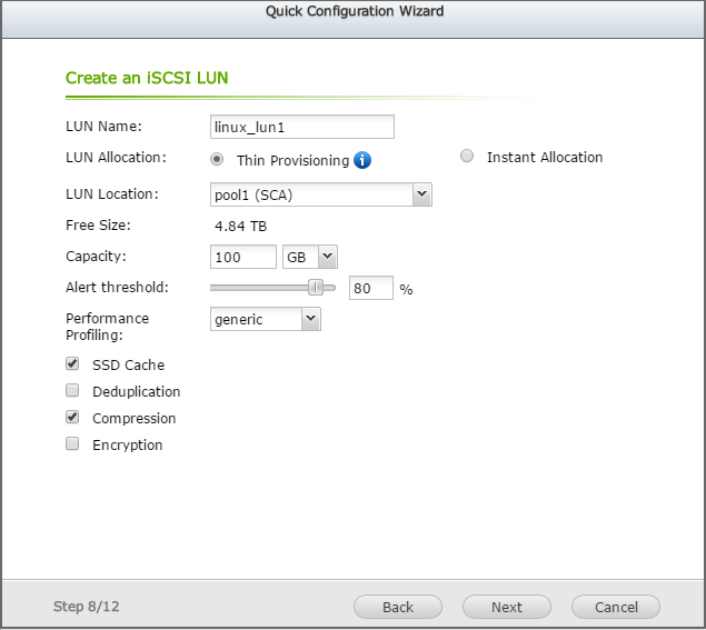 9. 調整 iSCSI LUN 設定以符合您的需求。
