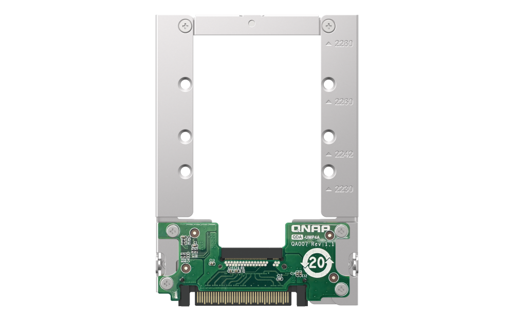 Standard Warranty 2 years Supported Drives 1 x M.2 2280 PCIe 4.0 x4 NVMe SSD 主機介面 U.2 (SFF-8639) PCIe 4.0 x4 支援的作業系統 QTS 5.x / QuTS h5.x (or later) Dimensions (L x W x H) 100.4 × 69.85 × 7 mm 注意:QNAP 有權視供應商產品供貨情況,更換部分零件或配件。其相容性與穩定性皆經過相同嚴格的測試檢驗,請用戶放心使用。