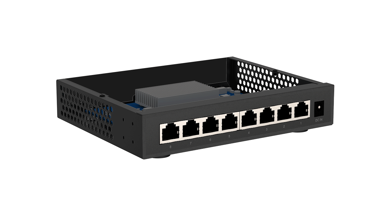 QSW-1108-8T-R2 採用無風扇設計,並透過機身底部導熱金屬、內部散熱片及外觀散熱孔來有效排除運轉時的熱能,不僅確保您的生活或工作空間不受噪音干擾,更維持高速網路效能。