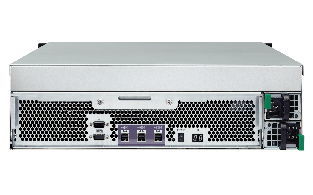 後面板:SAS 連線,SAS 錯誤,機箱 ID按鈕 電源按鈕 尺寸 (高 x 寬 x 深) 130 × 442.4 × 528.3 mm 重量 (淨重) 18.14 kg 重量 (總重) 25.92 kg 操作溫度 0 - 40°C (32°F - 104°F) 儲存溫度 -20 - 70°C (-4°F - 158°F) 相對濕度 5~95% RH 無冷凝,濕球溫度:27℃ (80.6°F) 電源供應設備 冗餘 / 熱插拔 ATX 電源供應器, 650W, 90-240Vac~, 50-60Hz 耗電量:運作模式,一般 204.4 W NAS 裝滿硬碟的狀態下所測試。系統警示 蜂鳴器 QTS / QuTS hero 支援 JBOD 串聯 標準保固 3 管理 透過 QNAP QTS 作業系統管理