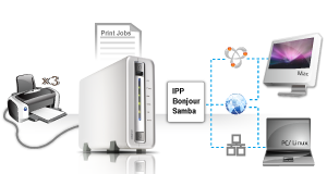 It's one of the elaborate home servers that exist on the market, offering control of cameras, printers and other equipment at home and can control the iPhone, and not least: you can put inside it and allow access to files even when you're away from home.