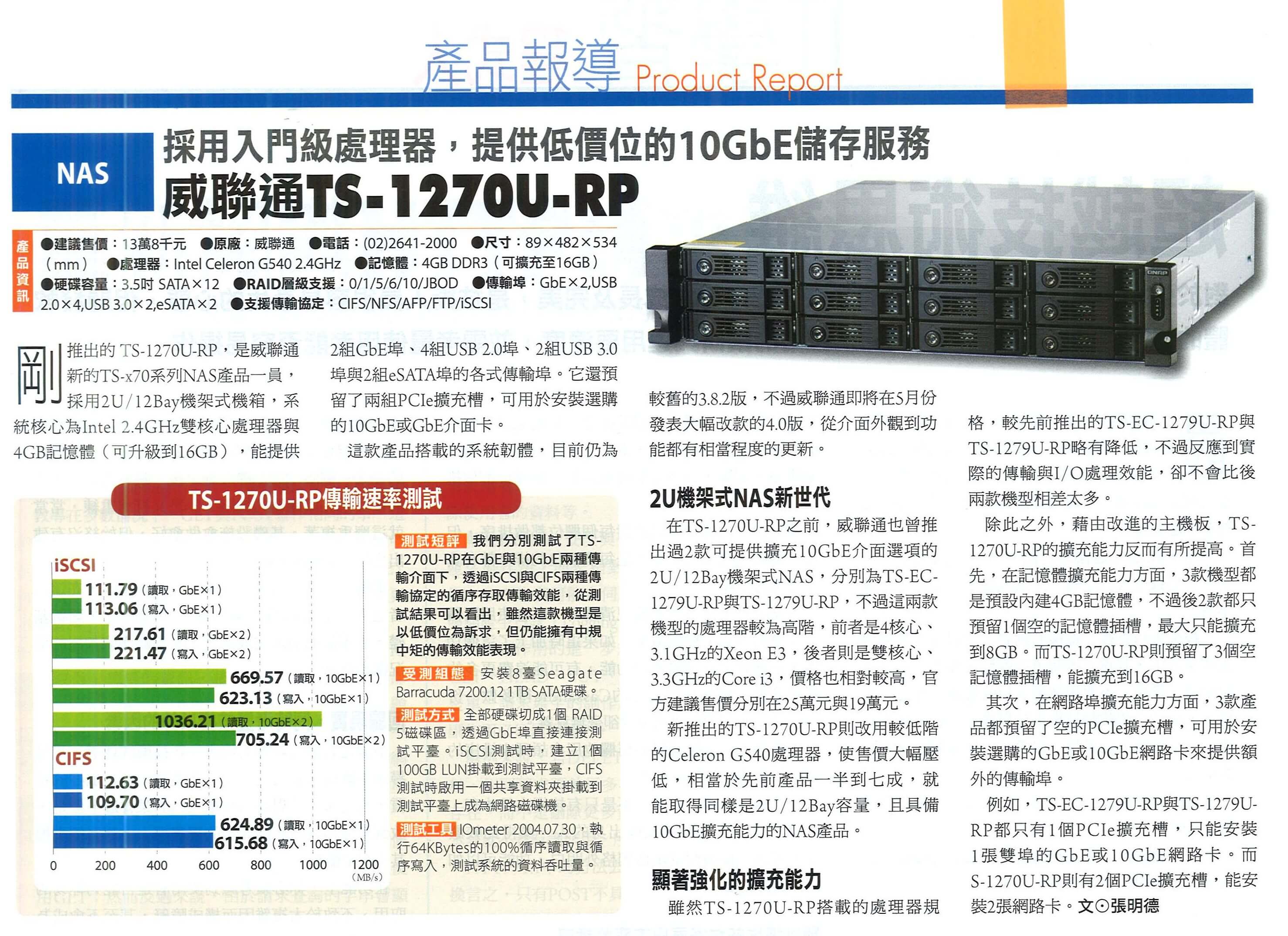 TS-1270U-RP 專為中小型企業設計的超高效能12 - 顆硬碟 NAS 伺服器