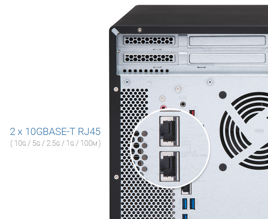 可外接 10GbE/40GbE 網卡、圖形顯示卡、USB 3.2 Gen 2 擴充卡,與 QM2 擴充卡。