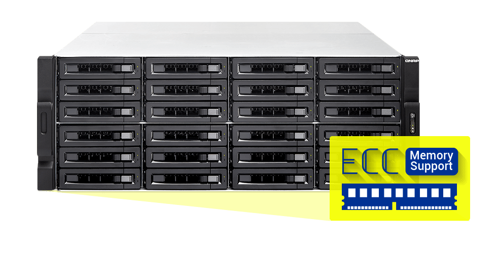 搭載 Intel® Xeon® E 處理器的 TS-2483XU-RP 支援 ECC (Error Correcting Code) 記憶體,能主動偵測並修正單一位元 (single-bit) 錯誤,確保系統穩定運作讓服務不間斷。TS-2483XU-RP 採用雙通道 DDR4 記憶體架構,配備 4 條 Long-DIMM 插槽,記憶體容量最大可擴充至 128 GB。透過成對安裝記憶體,您可獲得更大的記憶體頻寬,讓 TS-2483XU-RP 的運作效能更上一層樓,滿足高密集性之工作負載需求,尤其適合需要大量運算的應用,例如:虛擬化。