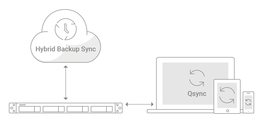 TS-453DU-RP 集中儲存與管理各種資料,並支援 SMB、AFP 及 NFS 等存取協定,可在 Windows®、Mac® 及 Linux®/UNIX® 等不同作業系統間進行檔案分享。搭配 Qsync 同步小工具,任何上傳到 TS-453DU-RP 的檔案,皆可在其他已連結至 NAS 的桌機、筆電或是行動裝置上讀取。HBS (Hybrid Backup Sync) 整合 QuDedup 來源端重複資料刪除技術,極小化備份檔案,幫助您輕鬆將 TS-453DU-RP 中的資料再備份或同步到另一台 QNAP NAS、遠端伺服器、或雲端備份空間,讓您享有健全的災難復原解決方案。