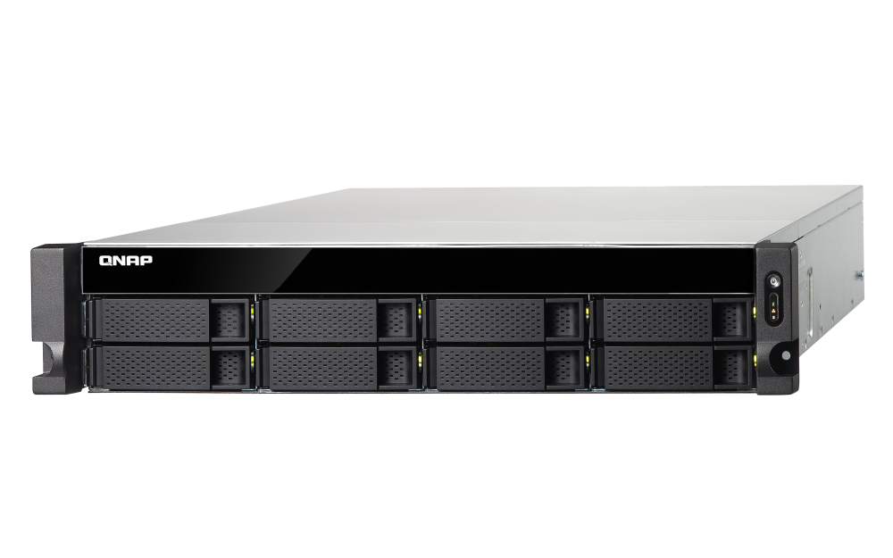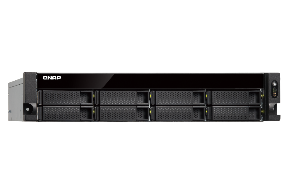 插槽 1:PCIe Gen 2 x4預載 QXG-10G1T 10GbE 網路介面卡USB 2.0 連線埠 2 USB 3.2 Gen 1 連線埠 2 USB 3.2 Gen 2 (10Gbps) 連線埠 可選購 PCIe 介面卡 外型規格 2U 機架式 LED 指示燈 HDD 1-8、狀態、網路、USB、電源 按鈕 電源、系統重置 尺寸 (高 x 寬 x 深) 89 × 482 × 534 mm 重量 (淨重) 11.02 kg 操作溫度 0 - 40°C (32°F - 104°F) 儲存溫度 -20 - 70 °C (-4°F - 158°F) 相對濕度 5-95% RH (不凝結),濕球:27˚C (80.6˚F) 電源供應設備 備援/熱抽換電源供應器,250W,100-240Vac~,47-63Hz,5A-2.5A 耗電量:磁碟待機模式 51.29 W 耗電量:運作模式,一般 107.3 W 系統警示 蜂鳴器 標準保固 3 同時連線 (CIFS) 數目上限 - 最大記憶體 800 注意:請僅使用 QNAP 記憶體模組來維持系統的效能與穩定性。若 NAS 裝置有多個記憶體模組,請使用相同規格的 QNAP 模組,並參考硬體使用手冊安裝相容的 QNAP 記憶體模組。