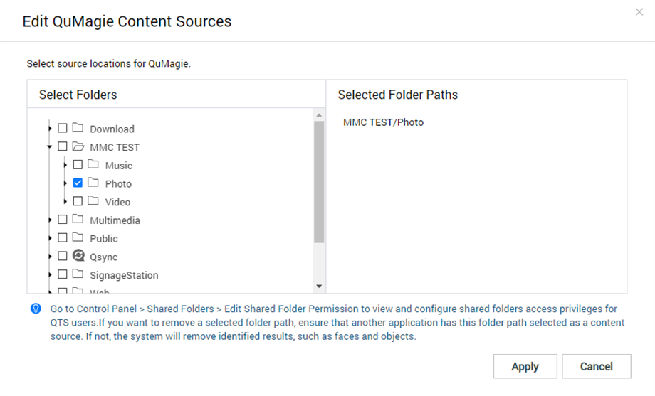 透過指定來源資料夾來決定每個應用可顯示的多媒體內容。