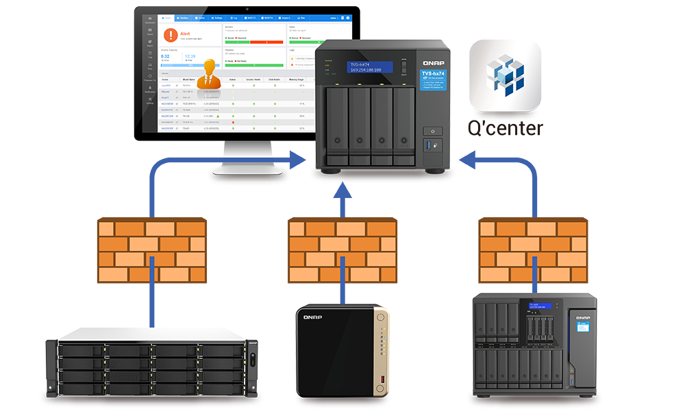 Q’center 專為各種 IT 環境打造,提供進階的防火牆穿越技術,確保 Q’center 伺服器與管理端 QNAP NAS 保持穩定連線,以隨時掌握必要資訊和維持資訊架構的順暢運行。Q’center 亦提供虛擬機版本,安裝環境更不受限。