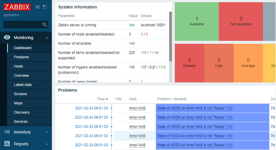 透過 Virtualization Station 建立虛擬機 (VM),並安裝 Zabbix、Nagios 或 PRTG 等網路管理系統(NMS),即可讓 NAS 成為全域連網設備系統監控站,所有設備如 NAS、路由器、網路交換器、數據機 (Modem)、集線器 (Hub)、不斷電系統 (UPS)、IP 電話、IP 攝影機、工作站和印表機等設備,皆能回傳系統資訊至 QNAP NAS,集中化多設備的系統報表及異常通知。